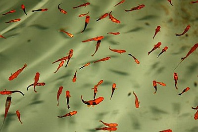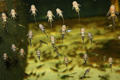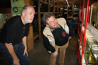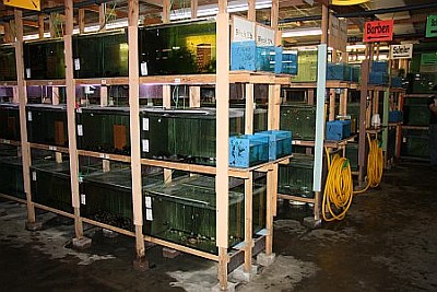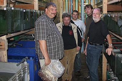 „Fahren Sie doch mal nach Leun“ lautet die Überschrift in der aktuellen Ausgabe des Vivaristikmagazins DATZ in der Rubrik Firmenportrait, in der das Aquarien-Groß- und Einzelhandelsgeschäft aqua natura ausführlich vorgestellt wird. Der Bericht klingt vielversprechend und so war es kaum verwunderlich, dass die Aquarianer der Fuldaer „Scalare“ neugierig wurden. Vorstandsmitglied Willi Bothe informierte sich dann noch auf der Webseite des familiengeführten Betriebes und spätestens jetzt war klar, dass man sich das vor Ort mal ansehen sollte. Das in Mittelhessen gelegene Leun bei Wetzlar kann man bequem von Fulda aus in eineinhalb Autostunden erreichen. Schon während der Fahrt konnte man die Vorfreude der Vereinsmitglieder Willi Bothe, Rainer Garrison, Matthias Frank und Sven Haustein spüren, die sich nach dem DATZ-Bericht und der Stockliste, die man auf der Webseite von aqua natura downloaden kann, viel von dem Ausflug versprachen. In Leun angekommen erwartete die vier Aquarianer ein eher trist wirkendes Gebäude, aber es kommt ja bekanntlich nicht auf die Verpackung sondern auf den Inhalt an. Betritt man das in einem Gewerbegebiet liegende Gebäude erwarten den Besucher allerhand Zubehör, Futter usw. Außer einem Schauaquarium ist im ersten Moment nicht viel zu sehen. Aber auf den zweiten Blick fällt der Vorhang auf, der in einen weiteren Raum zu führen scheint. Die freundlichen Mitarbeiter zeigen gerne den Weg und bieten sich zur Beratung an. Stolz präsentierten die Fuldaer Zierfischfreunde die neuen Imagebroschüren des Vereins mit der Bitte, diese hier auslegen zu dürfen. Natürlich war da auch der Hintergedanke im Spiel zu zeigen, „wer“ hier eben das Geschäft betreten hat… Nachdem man den ersten Verkaufsraum passiert hat kommt man in den Bereich, in dem Zierfische, Wirbellose und Wasserpflanzen verkauft werden. Unzählige Regalreihen mit ca. 1.200 Aquarien lassen erst mal staunen und der erste Eindruck lässt klar vermuten, dass sich diese Reise bestimmt gelohnt hat. Auf den zweiten Blick fällt auf, dass der Schwerpunk des Groß- und Einzelhandelsgeschäftes bei Lebendgebärenden Zahnkarpfen liegt, insbesondere Hochzucht-Guppys. Hiervon sind Farbvarianten zu sehen, die man selbst in Büchern oder im Internet kaum findet. Aber auch Buntbarschfreunde oder Garnelenliebhaber kommen nicht zu kurz, es ist für alle Aquarianer etwas Ausgefallenes dabei. Was ebenfalls auffällt ist der Hinweis „eigene Nachzuchten“ bei vielen Zierfischarten. Da sich die vier „Scalare“ gleich zu Beginn zu erkennen gegeben hatten dauerte es auch nicht lange, bis sich der Geschäftsinhaber Rolf Landvogt vorstellte und die angereisten Gäste aus Fulda freundlich begrüßte. Sein Angebot, die hauseigene Zuchtanlage anzuschauen ließ die Aquarianerherzen natürlich sofort höher schlagen. Der Blick hinter die Kulissen zeigte eine großzügige Zuchtanlage mit einigen Raffinessen. Rolf Landgut ist nicht nur von klein auf Aquarianer, sondern auch gelernter Zierfischzuchtmeister. Bei einer interessanten Führung verriet der Profi den Hobbyaquarianern aus Fulda einige Geheimnisse, die man nirgendwo nachlesen kann sondern das Ergebnis jahrelanger Erfahrung sind. Der Schwerpunkt liegt bei der Guppyzucht. Um reine Stämme zu bekommen sind jahrelange Kreuzungen nötig, bis die gewünschten Farben vorliegen. Wichtig ist auch das richtige Futter, das sich der Profizüchter nach seinen Vorgaben herstellen lässt. Ein weiterer Schwerpunkt von Rolf Landvogt ist die Bestimmung und Behandlung von Fischkrankheiten. Hierfür bietet er sogar Workshops an. Insgesamt überzeugt und beeindruckt das kompetente Wissen des Firmeninhabers, der weiß wovon er spricht. Aber nicht nur er allein sorgt für die hohe Qualität von aqua natura, sondern die ganze Familie die hier mitarbeitet und weitere Angestellte. Egal von wem man sich beraten lässt, die Antworten sind kompetent und immer freundlich. Insgesamt muss man sagen, dass die Stimmung bei aqua natura sehr angenehm ist und trotz der vielen Arbeit und Kunden keine übertriebene Hektik beim Team aufkommt. Natürlich fährt man nicht von Fulda nach Leun, ohne den Bestand zuhause aufzustocken. So freuten sich Willi Bothe und Rainer Garrison darüber, eine seltene Guppyfarbvariante (Poecilia reticulata) vom Chef zu bekommen, die so im Handel noch nicht verfügbar ist. Matthias Frank, der eher für die Reptilien in der Ausstellung im Tümpelgarten zuständig ist, kaufte sich ein weiteres Pärchen CPO-Krebse (Cambarellus patzcuarensis) für sein Aquarium zuhause. Die Tiere sind in einem besonderes intensiven orange gefärbt, was sicherlich an dem Spezialfutter der Familie Landvogt liegt. Schriftführer Sven Haustein, den seit einigen Monaten das „Crusta-Fieber“ gepackt hat, fand in dem überaus empfehlenswerten Fachgeschäft tolle Red-Bee Garnelen (Caridina cf. Cantonensis), Zwergrasboras (Rasbora maculatus) sowie die relativ neu eingeführten Kardinalfische aus Vietnam (lat. Tanichthys micagemmae – nicht zu verwechseln mit dem gewöhnlichen Kardinalfisch „Tanichthys albonubes“), die nur zwei Zentimeter groß werden und sich hervorragend für Nanoaquarien eignen. Die Chefin Ute Landvogt versorgte die Fuldaer-Delegation noch mit farbigen Garnelen- und Krebspostern für die Aquarien- und Terrarienausstellung im Rudi-Schmitz-Haus. Als Fazit des Ausfluges lässt sich sagen, dass eine Reise zu aqua natura in Leun auf jeden Fall lohnt – auch wenn der Weg weiter als der von Fulda aus sein sollte. Aquarianer bekommen hier eine neue Motivation für ihr Hobby sowie prächtige und gesunde Fische. Auf der Webseite www.aqua-natura.com findet man eine Stockliste der angebotenen Tiere. Für die vier Aquarienfreunde steht auf jeden Fall fest, dass diese Fahrt wiederholt wird und man kann mit Sicherheit davon ausgehen, dass sich einige Mitglieder des Fuldaer Aquarien- und Terrarienvereins „Scalare“ anschließen werden.