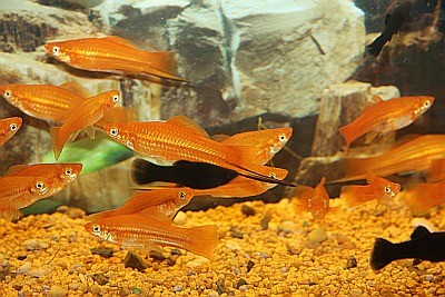 Neben Guppys gab es auch farbenprächtige Schwertträger...