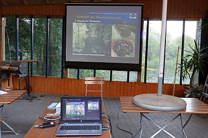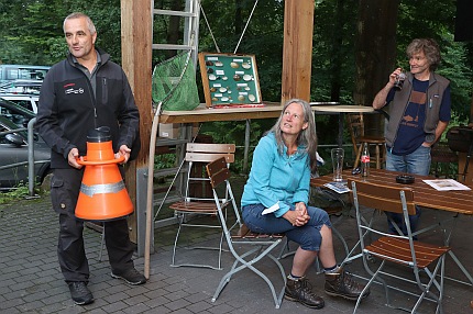 Anfang März 2020, also kurz vor dem ersten Lockdown, fand der letzte Vortrag im Rahmen der Vortragsreihe von Biosphärenreservat Rhön im Tümpelgarten in Fulda statt. Dann war 16 Monate Corona-Pause. Nun konnte Sven Haustein vom Vorstand des Fuldaer Aquarien- und Terrarienvereins „Scalare“ den bekannten Biologen Christoph Dümpelmann erstmalig zu einem Vortrag im Tümpelgarten begrüßen. Rund 30 Interessierte waren gekommen und die Veranstaltung fand gemäß des Hygienekonzepts draußen statt. „16 Monate mussten wir warten und nun starten wir wieder hier, wo wir aufhören mussten - im Tümpelgarten“, freute sich Haustein bei seiner Begrüßung. Gemeinsam mit dem Ranger von Biosphärenreservat Rhön Joachim Walter hatte er die Veranstaltung geplant und vorbereitet. Trotz der geltenden Auflagen war es den Verantwortlichen wichtig, wieder in ein Stück Normalität zu kommen. In gewohnter Weise präsentierte Christoph Dümpelmann seinen Vortrag über einheimische Muscheln in hessischen Gewässern. „Einige Arten sind komplett verschwunden und wir müssen davon ausgehen, dass sie in unseren Flüssen ausgestorben sind“, berichtete der Biologe und verwies dabei auf die Klimaerwärmung und Umweltverschmutzungen. Dümpelmann hat bereits einige Artenschutzprojekte in der Region erfolgreich durchgeführt, die vom Landkreis Fulda unterstützt werden. Dabei sind die Beteiligten auf Mithilfe angewiesen. Der Fuldaer Aquarien- und Terrarienverein „Scalare“ ist Projektpartner von Biosphärenreservat Rhön. Im Tümpelgarten konnte die stark gefährdete Fischart Karausche nachgewiesen werden, die inzwischen in regionalen Gewässern erfolgreich renaturiert wurde. „Wir kommen gerne in den Tümpelgarten“, dankte am Ende des Vortrags Rhön-Ranger Joachim Walter, der mit Scalare-Mitglied Harald Auth die Gewässerprojekte im Landkreis begleitet. Auch in Zukunft wollen die die Fuldaer „Scalare“ sich an den Artenschutzprojekten des Landkreises Fulda beteiligen. Text und Fotos: Sven Haustein