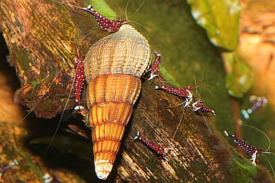 Schon längst spricht man bei der Nanoaquaristik nicht mehr nur von einem Trend, da die Haltung von Wirbellosen inzwischen fester Bestandteil der Vivaristik geworden ist. Insbesondere Zwerggarnelen sind die Favoriten bei den Aquarianern, die ihre Freude an den Unterwassergärten in kleinen Becken haben. Begonnen hat alles mit der Amano-Garnele (Caridina japonica), die erstmals in den 1990er Jahren in den deutschen Zoogeschäften auftauchte und das Interesse der Aquarianer weckte. Schnell folgten weitere Arten und eine neue Sparte in der Aquaristik wurde geboren. Zu den Pionieren in Sachen Haltung und Zucht von Wirbellosen zählen ohne Zweifel die Brüder Carsten und Frank Logemann. Vor über zehn Jahren begannen die beiden Aquarianer Wirbellose zu halten und es dauerte nicht lange, bis das Hobby zur intensiven Leidenschaft wurde. So waren es Carsten und Frank Logemann, die zu den ersten erfolgreichen Züchtern der Amano-Garnele gehörten und früh damit begonnen haben, Bienengarnelen zu halten und zu vermehren. Es folgten Reisen in die asiatischen Ursprungsländer der Wirbellosen und schon bald hatten die Brüder einen hohen Bekanntheitsgrad und Namen, wenn es um die Haltung und Vermehrung von Zwerggarnelen ging. Es folgten Bücher über Zwerggarnelen und irgendwann wurde der Entschluss gefasst, das Hobby zum Beruf zu machen. Das Ergebnis kann sich wahrlich sehen lassen. Das Garnelenhaus der Brüder Carsten und Frank Logemann ist das wohl bekannteste Geschäft in dieser Branche und bei den Nanoaquarianern erste Adresse wenn es um Wirbellose geht. Von dieser Tatsache konnte sich nun auch Sven Haustein vom Fuldaer Aquarien- und Terrarienverein „Scalare“ überzeugen, der die „Logemänner“ im Garnelenhaus in Oststeinbeck bei Hamburg besuchte. Schon wenn man in das Ladengeschäft hineingeht fällt der Blick auf ein großes Schauaquarium, das nicht nur toll gestaltet und bepflanzt ist, sondern hunderte Bienengarnelen beheimatet. Insgesamt machen die Räumlichkeiten einen aufgeräumten und aufgrund der hochwertigen Anlagen einen edlen Eindruck. Eine große Auswahl an Zubehör ist im Garnelenhaus zu finden und alles was zur erfolgreichen Zucht und Pflege von Garnelen und Krebsen benötigt wird kann hier erworben werden. Neben der großzügigen Verkaufsanlage befinden sich mehrere Schauaquarien im Garnelenhaus die alle auf ihre Weise unterschiedlich eingerichtet und echte Hingucker sind. Am auffälligsten ist sicherlich das Sulawesi-Aquarium mit intensiv gefärbten Kardinalsgarnelen (Caridina dennerli), die aus eigener Zucht stammen sowie den seltenen Goldpunktgarnelen (Caridina spinata) aus dem Matano- und Towutisee - ebenfalls eigene Nachzuchten. Was das Garnelenhaus so besonders macht und von anderen Zoogeschäften unterscheidet sind die angebotenen Produkte, die es zum Teil nur hier zu kaufen gibt. Die Inhaber Carsten und Frank Logemann lassen sich exklusiv von japanischen Händlern beliefern und der angebotene Bodengrund für Garnelen wurde von asiatischen Experten hergestellt. Die beiden Profizüchter haben die Gebiete in denen die Garnelen vorkommen mehrfach bereist und das Wasser und die Bedingungen analysiert. Aufgrund der gemachten Erfahrungen in Sachen Haltung, Zucht und natürlicher Lebensraum haben die Brüder mehrere Bücher geschrieben, die am Ende des Berichts vorgestellt werden. Der Großteil der Garnelenhaus-Kunden bestellt über die Webseite. Hier findet man in einer sehr übersichtlichen Form die Tiere und Produkte die im Garnelenhaus zu einem fairen Preis angeboten werden. Eine Beschreibung der Garnelen und anderen Wirbellosen sowie der unterschiedlichen Pflegemittel und des Zubehörs findet man ebenfalls auf der Internetseite. Ebenfalls zu finden sind eine ganze Menge Eigenprodukte, die die Brüder von erfahrenen Herstellern produzieren lassen und über das Garnelenhaus vertreiben.