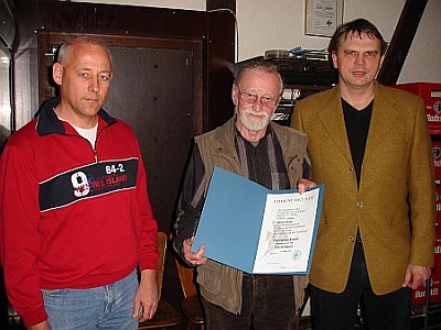 Das Jahr 2010 wird dem langjährigen Mitglied des Fuldaer Aquarien- und Terrarienvereins Horst Rose sicherlich in sehr guter Erinnerung bleiben. Zuerst wurde er in der Jahreshauptversammlung im März zum Ehrenfachwart und Ehrenmitglied ernannt und nun konnte „Scalare“-Präsident Christian Redweik und Fachwart Willi Bothe ihm zum 70. Geburtstag im Rahmen der Mitgliederversammlung gratulieren. 28 Jahre war Horst Rose 1. Fachwart in dem Fuldaer Verein und somit für die Aquarien- und Terrarienausstellung hauptverantwortlich. Das Amt des Fachwarts ist in einem Aquarien- und Terrarienverein mit Dauerausstellung eine wichtige Schlüsselposition. Man ist für die fachliche Seite und vor allem für das Beckenpflegerteam verantwortlich. Der Fachwart muss sich rechtzeitig vor Ausstellungsbeginn darum kümmern, dass alle Aquarien und Terrarien mit unterschiedlichen Arten besetzt sind und dass an Sonn- und Feiertagen Mitglieder für Kassendienste zur Verfügung stehen. Termine mit Gruppen wie z.B. Schulklassen und Kindergärten werden ebenfalls vom Fachwart koordiniert. Horst Rose hat diese Verantwortung fast 30 Jahre lang auf sich genommen und das mit großem Erfolg. In seiner Amtszeit gab es kein Jahr, in dem mal ein Aquarium oder Terrarium nicht besetzt war. Erreicht hat er dies durch einen vorbildlichen Zusammenhalt der Beckenpfleger, die unter seiner Führung zu einem echten Team gereift sind. Nach 28 Jahren Dienstzeit als 1. Fachwart und somit Verantwortungsträger in „erster Reihe“ gab Horst Rose in der diesjährigen Jahreshauptversammlung sein Amt an Willi Bothe ab. In einer feierlich gestalteten Beckenpflegerversammlung übergab er die Amtsgeschäfte an seinen Nachfolger und dankte den Vereinsfreunden für die jahrelange Unterstützung. Der neue Fachwart Willi Bothe, der diese Amt zusammen mit Elisabeth Eifert (2. Fachwart) ausübt, wird den Ehrenfachwart Horst Rose auch weiterhin mit in sein Team einbeziehen. Die Mitglieder des Fuldaer Aquarien- und Terrarienvereins „Scalare“ wünschen ihrem Ehrenfachwart Horst Rose alles Gute und freuen sich auf viele weitere Jahre im Tümpelgarten. Text und Fotos: Sven Haustein