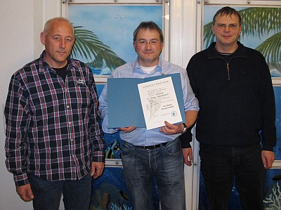 Eine harmonische Jahreshauptversammlung erlebten die über 40 Mitglieder des Fuldaer Aquarien- und Terrarienvereins „Scalare“ am Freitagabend im Tümpelgarten. Der Vorsitzende Christian Redweik erinnerte bei seiner Begrüßung an den kürzlich verstorbenen Joachim „Charly“ Tomas und in einer Gedenkminute wurde ihm und den Verstorbenen des Vereins gedacht. Redweik ließ das vergangene Jahr noch einmal Revue passieren und dankte allen, die am Erfolg des Vereins beteiligt waren. Schriftführer Sven Haustein ging in seinem Bericht auf neue Strategien in der Öffentlichkeitsarbeit ein und kündigte an, dass die neue Webseite des Vereins dieses Wochenende an den Start gehen wird. Er dankte der 2. Schriftführerin Sandy Dehler, die sich nicht mehr zur Wahl stellen wird, und dem Ehrenschriftführer Rolf Schröter für seine Unterstützung sowie allen Vereins- und Vorstandskollegen. Besonders gespannt waren die Mitglieder auf den Bericht des Hauptkassierers Peter Fritschi. Trotz der aufwendigen Sanierung des Vereinsheims ist die wirtschaftliche Lage des Vereins stabil. Peter Fritschi dankte seinen Stellvertretern Elvira Pollera und Patrick Dehler für die Unterstützung im Amt. Nach den Berichten der übrigen Vorstandskollegen wurden verdiente Mitglieder des Vereins geehrt. Mit der Ehrenurkunde wurde Melanie El-Mohamad ausgezeichnet, die als Beckenpflegerin in der Ausstellung aktiv ist. Mit der bronzenen Ehrennadel wurde Beckenpfleger Michael Maul geehrt, der zusammen mit Willi Bothe und Markus Jäger die Zierfischbörsen im Verein organisiert (nächste Börse am 1. April 2012). Auch die scheidende zweite Schriftführerin Sandy Dehler wurde mit Bronze ausgezeichnet. Neben ihrer Vorstandstätigkeit hat sie unter anderem die Imagebroschüre des Vereins gestaltet.