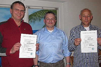 Die weit über 40 Vereinsmitglieder erlebten am Freitagabend eine harmonische Jahreshauptversammlung im Tümpelgarten in Fulda, bei der Vorstandswahlen anstanden und verdiente Mitglieder ausgezeichnet wurden. Der 1. Vorsitzende Christian Redweik blickte in seinem Bericht auf das abgelaufene Jahr 2013 zurück. Neben den Zierfischbörsen fand wieder eine gemeinsame Ausstellung mit dem Modelleisenbahn-Club Fulda e.V. statt, die inzwischen zum Zuschauermagnet geworden ist. Auch das Sommerfest war wie immer gut besucht. Ein besonderes Highlight war sicherlich der Einsatz der Neuenberger Pfadfinder, die im Rahmen der „72-Stunden-Aktion“ den Spielplatz im Tümpelgarten erneuert haben. Herzstück des Vereins ist nach wie vor die Aquarien- und Terrarienausstellung, die wieder am Karfreitag öffnet. Es ist erfreulich, dass die Besucherzahlen weiter gestiegen sind. Auch mit dem Verband Deutscher Vereine für Aquarien- und Terrarienkunde e.V. (VDA) fanden wieder Veranstaltungen im Tümpelgarten statt. Natürlich gibt es auch in Zukunft noch einiges für den Verein zu tun. Die Sanitäranlagen müssen saniert werden, was bei der momentanen finanziellen Lage nach der Erneuerung des Vereinsheims sicherlich mittelfristig geschehen wird. In seiner Eigenschaft als Pressewart lobte Christian Redweik die Zusammenarbeit mit den Medien. Zahllose Beiträge wurden im abgelaufenen Jahr in Printmedien, im Internet sowie im Radio veröffentlicht. Am Ende seines Berichts dankte der Vorsitzende seinen Vorstandkollegen und den aktiven Vereinsmitgliedern für die großartige Unterstützung im letzten Jahr. Schriftführer Sven Haustein freute sich in seinem Bericht darüber, dass die Webseite und die beiden Facebook-Seiten des Vereins auch in 2013 wieder gut besucht waren. Ab sofort stehen den Besuchern auch Videos über den Verein und die Ausstellung auf der Webseite zur Verfügung. Am Ende seines Berichts bedankte er sich für die Unterstützung durch Vorstands- und Vereinskollegen. Auf den Bericht des Hauptkassierers Peter Fritschi waren alle gespannt. Nach der Sanierung des Vereinsheims im Jahr 2010 waren die finanziellen Reserven des Vereins aufgebraucht und umso erfreulicher ist es, dass nun wieder ein finanzielles Polster vorhanden ist. Die beiden Kassenprüfer Dieter Kammerl und Peter Sippel bescheinigten dem Hauptkassierer eine vorbildliche Kassenführung und baten um Entlastung, die einstimmig erfolgte. Auch die anderen Vorstandsberichte zeigten, dass sich der Verein in einem guten Zustand befindet. Die Fachwarte berichteten, dass wieder viele Gruppen wie z.B. Kindergärten und Schulklassen im Tümpelgarten zu Gast waren. Die Jugendwarte berichteten von den Zahlreichen Aktivitäten und Ausflügen die im letzten Jahr stattgefunden haben. Auch der Tümpelwart zeigte sich in seinem Bericht mit dem Zustand des großen Vereinsgeländes zufrieden.