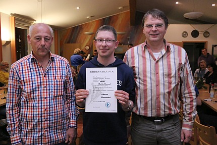Bei den Ehrungen wurden die Mitglieder Andreas Schuppelius und Karsten Fröhlich mit der Ehrenurkunde des Vereins ausgezeichnet. Melanie el Mohammad und Marco Sommer erhielten die bronzene Ehrennadel. Martin Kimmel wurde mit der silbernen Ehrennadel geehrt.
