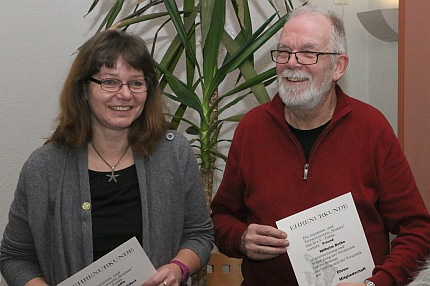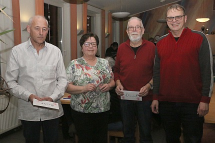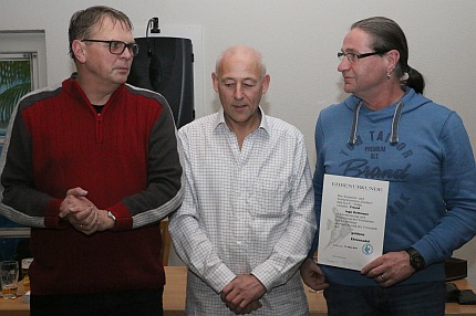 Auch die Zeit von Willi Bothe als Fachwart endete an diesem Abend. Er hatte das Amt vor einigen Jahren von Ehrenfachwart Horst Rose übernommen, nachdem er bereits viele Jahre als Tümpelwart dem Vorstand angehörte. Willi Bothe organisierte als Fachwart gemeinsam mit dem 2. Vorsitzenden Markus Jäger und Michael Maul viele Zierfischbörsen. Er hat der Aquaristik und Terraristik eine hohe Priorität in seiner Amtszeit gegeben und pro Jahr zwischen 50 und 60 Schulklassen und Gruppen außerhalb der Öffnungszeiten betreut. Willi Bothe war auch Organisator vieler Veranstaltungen des Verbands Deutscher Vereine für Aquarien- und Terrarienkunde e.V. (VDA) im Tümpelgarten. Mit dem Ausscheiden aus dem Vorstand geht mit Willi Bothe eine Ära zu Ende. Auch er sagte zu, den Verein weiterhin zu unterstützen und als aktiver Pfleger eines Aquariums bleibt er der Ausstellung erhalten. Eine weitere Ära ging mit Jürgen Blum als Gerätewart an diesem Abend zu Ende. Auch er begleitete das Amt Jahrzehnte lang und hat mit seinem unermüdlichen Einsatz den Verein geprägt wie kaum ein anderer. Jürgen Blum war maßgeblich an allen Baumaßnahmen beteiligt und ist nach wie vor ein sehr aktives Mitglied. Auch ihm sprachen die Mitglieder ihren Dank aus. Elvira Pollera scheidete als Stv. Kassiererin nach vielen Jahren aus dem geschäftsführenden Vorstand aus. Sie und ihr Mann Aldo sind dem Verein seit Jahren verbunden und haben ihn mit zu dem gemacht, was er heute ist. Elvira Pollera hat den Hauptkassierer entlastet und sich um viele Vereinsangelegenheiten gekümmert. Auch ihr dankten die anwesenden Mitglieder für den vorbildlichen Einsatz.