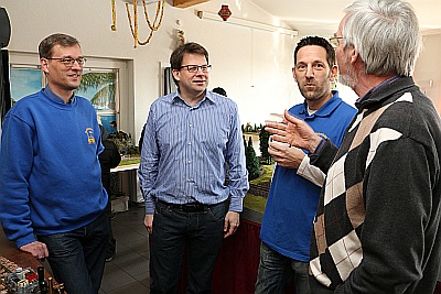 Vor gut acht Jahren hatten die beiden Vorsitzenden des Aquarien- und Terrarienvereins „Scalare“ Christian Redweik und Modelleisenbahnclubs „MEC“ Michael Gehring die Idee, gemeinsam eine Ausstellung zu organisieren. Der Reiz dabei, Technik und Natur zusammen zu bringen fand auch bei den Mitgliedern der beiden Traditionsvereine großen Anklang und so wagte man sich an das Vorhaben heran. Das Motto „Krokodil trifft Krokodil“ war schnelle gefunden; denn auf der großen Garteneisenbahn fährt eine sogenannte Schweizer-Krokodillok und die Attraktion in der Aquarien- und Terrarienausstellung sind ein Pärchen Kuba-Krokodile. An diesem Wochenende war es dann wieder soweit. Nachdem die verschiedenen Modelleisenbahnanlagen aufgebaut waren, konnten die Besucher an zwei Tagen die gemeinsame Ausstellung der beiden Fuldaer Vereine bewundern. Neben der großen Garteneisenbahn gab es weitere kleinere Anlagen zu sehen. In der auf zwei Etagen befindlichen Aquarien- und Terrarieausstellung gab es tropische Fische, Reptilien, Amphibien und seltene Insekten zu sehen. Auch OB-Kandidat Dr. Heiko Wingenfeld, der die gemeinsame Ausstellung auch in den vergangenen Jahren immer wieder besucht hatte und in seiner Funktion als Vize-Landrat immer ein offenes Ohr für Vereine hat, kam mit seiner Familie in den Tümpelgarten. Er zeigte sich von der Zusammenarbeit der Fuldaer „Scalare“ und des Modelleisenbahnclubs begeistert und lobte die gute Arbeit der beiden Vereine.
