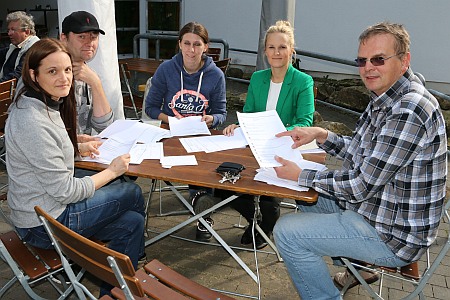 Die drei Geschwister von Urmel sollen ab sofort Lilli, Bella und Cleo heißen. Die Vorschläge kommen von Dominik Keitzer, der sich nun auf eine Jahreskarte für die Aquarien- und Terrarienausstellung freuen darf. Am kommenden Samstag (19. September um 15 Uhr) stoßen die verantwortliche FZ-Journalistin Jacqueline Kleinhans (2.v.r.) gemeinsam mit den Züchtern, dem Gewinner und „Scalare“ Vorstand Christian Redweik (re.) auf die kleinen Kubakrokodile im Tümpelgarten an. Besucher und Gäste sind herzlich willkommen.
