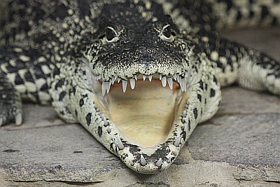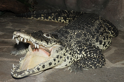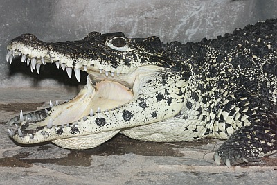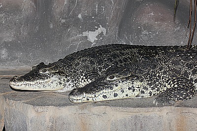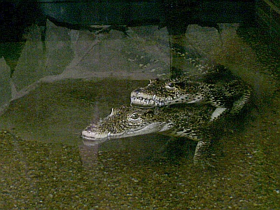 Es ist zu erwarten, dass sich die beiden Kubakrokodile (Crocodylus rhombifer) Klara und Willi zu den heimlichen Favoriten bei den Besuchern entwickeln werden, gehören sie doch zu den spektakulärsten Bewohnern des neuen Ausstellungsgebäudes im Tümpelgarten. Kubakrokodile sind in freier Wildbahn sehr stark bedroht. Man findet sie nur noch in zwei Sumpfgebieten auf Kuba. Ein Hauptgrund für die Bedrohung ihres Bestandes besteht darin, dass sich in freier Wildbahn Kubakrokodile mit Spitzkrokodilen kreuzen. Da aber Spitzkrokodile auf Kuba, nicht zuletzt durch den Eingriff des Menschen in die Natur, sehr viel häufiger anzutreffen sind, werden sie sich auf lange Sicht genetisch durchsetzen. Kubakrokodile werden etwa 2,50 Meter lang, in Einzelfällen sogar noch größer. Wie fanden nun aber Klara und Willi ihren Weg nach Fulda? Nun - im Jahr 1989 wurden sie als Babys am Leipziger Flughafen beschlagnahmt. Ein Kubaner hatte versucht, die unter Artenschutz stehenden Tiere illegal einzuführen. Sie wurden zunächst für einige Zeit im Dessauer Tierpark untergebracht. Da es dort aber keine Krokodilanlage gab, zogen die beiden Reptilien in den Tierpark nach Hamm um. Im Jahr 1997 musste dort aus baulichen Gründen die Krokodilhaltung eingestellt werden, und die beiden Panzerechsen wurden an die beiden, in Fachkreisen bestens bekannten, Terrarianer Matthias Frank und Markus Jäger abgegeben, die seitdem Klara und Willi im Tümpelgarten pflegen. Inzwischen sind sie ca. 11-12 Jahre alt und haben eine Körperlänge von etwa 1,60 Meter. Auch wenn bei dem Betrachter vor dem großräumigen Gehege der Eindruck entstehen sollte, die Tiere seien träge oder gar nur Attrappen, weil sie sich kaum bewegen, so kann versichert werden, dass sie bei der Fütterung pfeilschnell agieren, so dass Vorsicht unbedingt geboten ist, damit es nicht zu schwersten Verletzungen kommt. Doch die Besucher können beruhigt sein. Alle Terrarien entsprechen den neusten Sicherheitsstandards und einem Besuch des Ausstellungsgebäudes steht nichts im Weg.