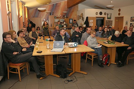 Der Fuldaer Aquarien- und Terrarienverein „Scalare“ ist nicht nur bekannt für seine Vorträge zu tropischen Fischen, Reptilien und das Wels-Arterhaltungstreffen, sondern auch für aktiven Natur- und Artenschutz in der Region. Deshalb wurde der Verein vor einigen Jahren Projektpartner von Biosphärenreservat Rhön und in diesem Rahmen finden regelmäßig Vorträge im Tümpelgarten statt. Fast 60 interessierte Besucher waren zu dem Vortrag „Auswirkungen von Licht auf die Gewässerökologie“ gekommen, der im Rahmen der Vortragseihe von Biosphärenreservat Rhön im Tümpelgarten stattfand. Die Referentin Dr. Sybille Schroer vom Leibnitz-Institut in Berlin berichtete, wie sich künstliches Licht bei Nacht auf die die Tiere über und unter Wasser auswirkt. Viele Lichtquellen beeinflussen den Biorhythmus insbesondere von Insekten negativ, was dann Auswirkungen auf die nachfolgende Nahrungskette bis hin zum Menschen hat. „Die Lichtquellen sind nicht optimal für ihren Zweck abgestimmt und strahlen oft zu viel und zu helles Licht aus“, so die Wissenschaftlerin. Dr. Schroer verwies in ihren Ausführungen auf wissenschaftliche Studien, die hierzu über Jahre stattgefunden haben. Auch Sternenpark-Expertin Sabine Frank vom Landkreis Fulda berichtete von den Problemen der Lichtverschmutzung und machte dies an anschaulichen Beispielen deutlich. „Beim Herkommen ist mir aufgefallen, dass der Strahler auf dem Parkplatz hier im Tümpelgarten viel zu hoch strahlt und anders eingestellt werden sollte“. Michael Lomb und Sven Haustein vom Vorstand der Fuldaer „Scalare“ nahmen das gleich auf und sagten zu, den Strahler neu auszurichten. Bei den anschließenden Diskussionen konnte man feststellen, dass durch den Vortrag bei den Anwesenden Bewusstsein geschaffen wurde und sicherlich die eine oder andere Lichtquelle im heimischen Garten künftig nicht mehr leuchten wird. Sven Haustein dankte Dr. Sybille Schroer für den interessanten Vortrag ebenso wie dem Leiter von Biosphärenreservat Rhön Thorsten Raab, der gemeinsam mit Sabine Frank und Joachim Walter in den Tümpelgarten gekommen war. Text und Fotos: Sven Haustein