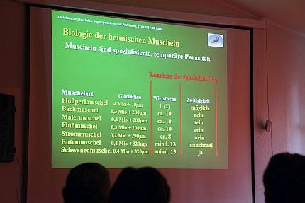 Wieder einmal war der bekannte Biologe Christoph Dümpelmann im Rahmen eines Vortrages vom Biosphärenreservat Rhön im Tümpelgarten zu Gast. Das Thema lautete „Muscheln - gefährdete Bewohner unserer Gewässer“. Dümpelmann zeigt in seiner Präsentation die Arten, die in unseren Gewässern zu finden sind. Viele Muscheln sind aufgrund von Umwelteinflüssen bedroht. Deshalb ist es wichtig, sie durch geeignete Maßnahmen zu erhalten, da sie im natürlichen Kreislauf der Unterwasserbiologie eine wichtige Rolle spielen. Die in unseren Gewässern vorkommenden Bitterlinge (lat. Rhodeus amarus) z.B. legen ihre Eier in Muscheln ab. Würde also der Bestand an Muscheln zurückgehen, hätte das auch Auswirkungen auf Bitterlinge die wiederum eine wichtige Rolle in der Nahrungskette der Raubfische spielen. Bereits in der Vergangenheit war der Tümpelgarten beliebter Vortragsort von Biosphärenreservat Rhön. Im August 2016 schlossen die Fuldaer „Scalare“ mit Biosphärenreservat Rhön eine Projektpartnerschaft zum Erhalt der Karausche (lat. Carassius carassius), die in den Tümpeln des Vereins nachgewiesen werden konnten. Der Aquarien- und Terrarienverein "Scalare" 1925/55 e.V. Fulda ist offizieller Projektpartner von Biosphärenreservat Rhön. Text und Fotos: Sven Haustein