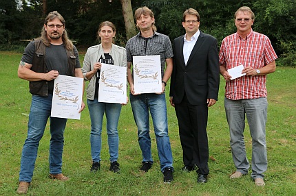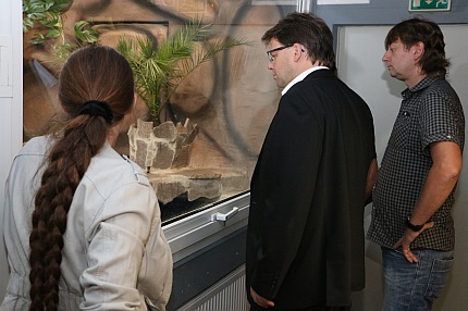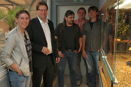 Für Melanie el Mohamad, Matthias Frank und den 2. Vorsitzenden des Fuldaer Aquarien- und Terrarienvereins „Scalare“ Markus Jäger war es eine ganz besondere Ehre. Auf dem Bundeskongress des Verbands Deutscher Vereine für Aquarien- und Terrarienkunde e.V. (VDA) in Kiel wurden die Drei mit dem begehrten Züchterpreis ausgezeichnet, der nur alle zwei Jahre vergeben wird. Den Reptilienexperten war es im letzten Jahr gelungen, erstmalig in Deutschland die vom Aussterben bedrohten Kubakrokodile (lat. Crocodylus rhombifer) zu vermehren. Der VDA ist der Dachverband für Aquarianer und Terrarianer in Deutschland mit über 15.000 Mitgliedern, dem auch die Fuldaer „Scalare“ angehören. Der Preis wird an Züchter vergeben, denen die Vermehrung seltener oder nur schwer nachzuziehender Arten gelingt. Auch Fuldas Oberbürgermeister Dr. Heiko Wingenfeld freute sich über die Auszeichnung, die an die drei Krokodilexperten vergeben wurde. Wingenfeld besucht die Aquarien- und Terrarienausstellung im naheliegenden Tümpelgarten regelmäßig. Für das Stadtoberhaupt war es eine Selbstverständlichkeit, den Züchtern persönlich zu gratulieren. Bei dieser Gelegenheit konnten die Verantwortlichen dem Oberbürgermeister stolz mitteilen, dass vor wenigen Tagen wieder kleine Krokodile geschlüpft sind. „Man sieht also, dass der Zuchterfolg des letzten Jahres kein Zufall war und sich die Krokodile in ihrem Terrarium wohlfühlen“, so der Vorsitzende des Vereins Christian Redweik. Oberbürgermeister Dr. Wingenfeld: „Ich freue mich, dass den Scalaren diese seltene Zucht gelungen ist. Die Idee, die Tiere einem Projekt zur Arterhaltung zukommen zu lassen zeigt, dass hier mit großer Verantwortung gehandelt wird. Der Verein ist ein Beispiel dafür, dass die oft kritisierte Haltung exotischer Tiere nicht vorschnell erfolgen darf - hier haben wir ein Beispiel mit einem hohen Maß an Nachhaltigkeit. Als Oberbürgermeister freue ich mich natürlich, dass Bürgerinnen und Bürgern unserer Stadt etwas Besonderes gelungen ist. Der Züchterpreis bestätigt das noch einmal.“ Das vom Aussterben bedrohte Kubakrokodil-Pärchen aus dem Tümpelgarten wurde 1989 am Hauptbahnhof in Dessau beschlagnahmt. Tierschmuggler hatten versucht, die seltenen Reptilien direkt aus Kuba illegal nach Deutschland einzuführen. Die Tiere waren von da an in zwei Tierparks untergebracht, bevor sie dann vor knapp 20 Jahren in die Aquarien- und Terrarienausstellung nach Fulda kamen. Markus Jäger und Matthias Frank vom Fuldaer Aquarien- und Terrarienverein sind bei den Naturschutzbehörden als ausgewiesene Reptilienexperten bekannt und bekamen vor vielen Jahren die Möglichkeit, die bis zu drei Meter groß werdenden Krokodile zu pflegen. Zu der damaligen Zeit war der Neubau des Ausstellungshauses im Tümpelgarten in Planung und so wurde das großzügige Aquaterrarium für die beiden Panzerechsen in dem zweistöckigen Gebäude entsprechend berücksichtigt. Die Nachzuchten sollen nun internationalen Zuchtprogrammen zugeführt werden, die der Erhaltung dieser seltenen Krokodile dienen. Die jungen Kubakrokodile sind neben vielen anderen Tieren in der Aquarien- und Terrarienausstellung im Tümpelgarten zu sehen, die an Sonn- und Feiertagen von 10 bis 17 Uhr und nach Vereinbarung bis Anfang November geöffnet ist. Auf der Webseite der Fuldaer „Scalare“ www.scalare-fulda.de bekommt man viele Informationen über die Aktivitäten und Veranstaltungen des Vereins.
