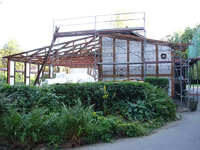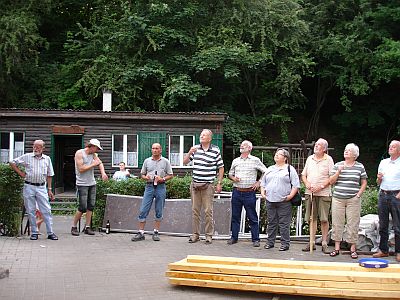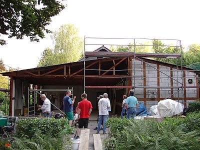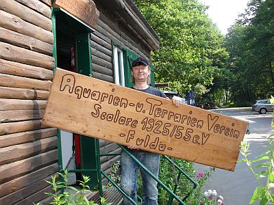 Dass das Vereinsheim des Fuldaer Aquarien- und Terrarienvereins „Scalare“ in die Jahre gekommen war, war beim Betreten der Räumlichkeiten inzwischen nicht mehr zu übersehen. Der Fußboden inklusive Aufbau sowie das Dach waren an einigen Stellen so stark beschädigt, dass vor gut drei Wochen mit den Vorarbeiten der Sanierung begonnen wurde. Das Sonnensegel vom diesjährigen Sommerfest war kaum abgebaut und schon ging es übergangslos weiter. Zunächst musste aus dem alten Gebäude alles raus geräumt werden, die Küche wurde demontiert und die Stromleitung abgeklemmt. 14 Tage hatten die Mitglieder des Fuldaer Vereins Zeit, bevor vor einer Woche mit dem Teilabriss begonnen wurde. Vorausgegangen war eine Ausschreibung für die zu erledigenden Arbeiten und schon bald war man sich mit der Firma Dimmerling aus Großenlüder einig das Projekt gemeinsam zu starten. Firmenchef Dietmar Dimmerling hatte sofort einen guten Eindruck vom Verein und die unterschiedlichen Vorstellungen wurden diskutiert. Die überzeugenden Ideen lieferte dann Architekt Guido Gärtner, der dann auch die Pläne und Zeichnungen anfertigte. Da es sich um eine Sanierung und nicht um einen Neubau handelt, war der gestalterische Ansatz vornehmlich im Innenbereich zu suchen. Zukünftig wird sich der große Clubraum ohne Zwischendecke offener präsentieren und eine rustikale Holzverkleidung für stimmungsvolle und gemütliche Atmosphäre sorgen. Im ersten Bauabschnitt wir der große Clubraum und die Küche saniert, in ein paar Jahren wird dann der Sanitär- und Eingangsbereich ebenfalls neu gestaltet. Von Seiten der Fuldaer „Scalare“ hatte sich ein fünfköpfiger Bauausschuss gebildet, der die Planung des Projekts übernommen hatte. Inzwischen ist ein Großteil der Vereinsmitglieder fast täglich auf der Baustelle, um das Gelände nach einem Arbeitstag der Firma Dimmerling aufzuräumen oder kleine Arbeiten rund um das Vereinsheim zu übernehmen. Schließlich geht der Ausstellungsbetrieb im Rudi-Schmitz-Haus in gewohnter Weise weiter und ist an Sonn- und Feiertagen von 10 bis 18 Uhr für Besucher geöffnet. Den Verantwortlichen des Vorstandes ist es richtig anzumerken, welche Freude es macht, gemeinsam mit vielen motivierten Mitgliedern ein solches Projekt durchzuführen – und das alles ehrenamtlich und für das gemeinsame Hobby. Kurzfristige Arbeitseinsätze werden per SMS mitgeteilt und schon ein paar Stunden später trifft man sich zum Helfen nach dem Motto „Viele Hände, schnelles Ende“. Und so war möglich, dass nach nur so kurzer Zeit schon Richtfest im Tümpelgarten gefeierten werden konnte, zu dem viele Vereinsfreunde gekommen waren. Nach einer kurzen Begehung und Klärung wichtiger Fragen sprach Dietmar Dimmerling den Richtspruch und wünschte dem Projekt auch weiterhin Gottes Segen und viele Glück. Auch Architekt Guido Gärtner hatte es sich nicht nehmen lassen, mit Familie in den Tümpelgarten zu kommen. Im Anschluss wurde noch lange zusammen diskutiert und die Freude über die bald neuen Räumlichkeiten war deutlich zu spüren – auch wenn noch einiges an Arbeit vor dem Fuldaer Traditionsverein liegt…