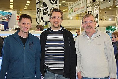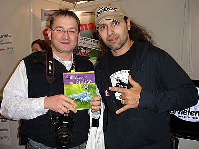 Die Verkaufsmesse “Fisch und Reptil” in Sindelfingen war am Samstag das Ausflugsziel von vier Vereinsmitgliedern der Fuldaer „Scalare“. Der 2. Vorsitzende Axel Christ, der nicht zum ersten Mal auf dieser Messe war, hatte nicht zu viel versprochen. Neben den namenhaften Firmen und Herstellern gab es viele Tiere und Pflanzen zu sehen und interessante Vorträge wurden angeboten. Besonders groß war aber die Freude bei Schriftführer Sven Haustein, der den bekannten Natur- und Tierfotografen Chris Lukhaup auf der Messe kennenlernen konnte, der inzwischen weltweit zu den führenden Garnelen- und Krebsexperten zählt und Autor zahlreicher Bücher und Fachpublikationen ist. Für Sven Haustein war das Treffen ein gelungener Abschluss seiner monatelanger Recherche über wirbellose Tiere und Nano-Aquaristik, aus der der Fachbericht „Nanoaquaristik und „Crusta-Fieber“ - ein Modetrend oder doch mehr?“ entstanden ist, den er zusammen mit Markus Jäger und Matthias Frank verfasst hat. In dem Bericht werden insbesondere die aktuellen Fachbücher von Chris Lukhaup vorgestellt, der mit herausragenden Tierfotos beeindruckt. Aber auch die „Seewasser-Fraktion“, bestehend aus Markus Müller, Gerhard Schröter und dem 2. Vorsitzenden Axel Christ, fand interessantes zum Thema Meerwasser auf der Verkaufsmesse in Sindelfingen. Am Ende des gelungen Messebesuches konnten die vier Aquarianer noch eine wunderschöne Mördermuschel erwerben, die in der nächsten Ausstellungssaison im Meeresaquarium im Tümpelgarten bewundert werden kann. (sh)