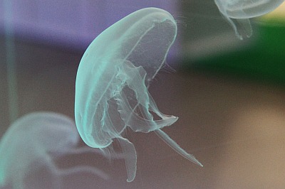 In einem Aquarium schwammen Quallen.