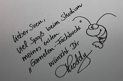 Auf einer Messe trifft man viele „Prominente“ aus der Szene, von denen man einiges erfahren kann, was es evtl. Neues geben wird. Der bekannte Grafiker und Buchautor Thorsten „Thoddy“ Hardel z.B. stellte in Aussicht, dass er ein weiteres Buch im Stil von seinem Klassiker „Garnelencocktail“ plant. Auch Chris Lukhaup, Spezialist für Wirbellose und einer der weltweit besten Tierfotografen, stellte in Aussicht, dass es in 2013 neue Buchprojekte geben wird. Zusammen mit Frank und Carsten Logemann arbeitet er an einem Fachbuch über Sulawesi-Garnelen, dass Anfang nächsten Jahres erscheinen soll (scalare-fulda.de berichtet bereits in dem Bericht „Das Garnelenhaus in Oststeinbek“ darüber).