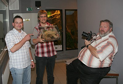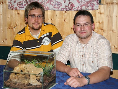 Welch ein Rummel um einen kleinen harmlosen Skorpion fand dieser Tage in Fulda statt. Dabei hatte die Geschichte mit einem harmlosen Ananaskauf begonnen – aber noch mal alles von vorne: Bei unserem Vereinsfreund Markus Müller klingelte das Telefon und am anderen Ende war eine aufgeregte junge Frau, die einen Skorpion durch ihre Wohnung spazieren sah. Der aufmerksame Terrarienexperte machte sich sofort auf den Weg und konnte den fremden Besucher in einem Behälter „außer Gefecht“ setzen. Aber wie kam der vier Zentimeter große Skorpion, der in Südeuropa zu Hause ist, in die Wohnung? Die junge Frau aus Petersberg hatte bei einem Lebensmittelmarkt eine Ananas gekauft und sich anscheinend mit dieser Frucht das Insektentier als „blinden Passagier“ ungewollt mitgebracht. Daraufhin setzte sie sich verantwortungsbewusst mit der Tierschutzbehörde in Verbindung und meldete dort den exotischen Eindringling. Schnell entpuppte sich diese Geschichte als ein „gefundenes Fressen“ für Presse, Rundfunk und Fernsehen. Die Fuldaer Zeitung berichte kurz auf der ersten Seite und mit einer kompletten halben Seite im regionalen Teil mit großem Foto über den Skorpion. Es wurde der vermutete Hergang beschrieben und dafür plädiert, dass der Skorpion sein neues zu Hause im Tümpelgarten bei dem Fuldaer Aquarien- und Terrarienverein finden soll. Der Radiosender Hit Radio FFH berichtete mehrmals über den Skorpion in der Ananas in ihrem Programm. Langsam aber sicher wurden auch die anderen Rundfunk- und Fernsehanstalten auf den Skorpion aufmerksam. Bei dem 1. Schriftführer Sven Haustein klingelte das Telefon heiß. Fernsehteams wollten sich auf den Weg nach Fulda machen, um das Tier näher unter die Lupe zu nehmen und über diese ungewöhnliche Geschichte zu berichten. Leider war es der Petersbergerin aus beruflichen Gründen nicht möglich, die Pressetermine wahrzunehmen, da Sie wegen eines Seminars Fulda für ein paar Tage verlassen musste. Der Skorpion fand vorerst Zwischenstation bei dem Schriftführer der Fuldaer „Scalare“ Sven Haustein und wurde dann in die Aquarien- und Terrarienausstellung in den Tümpelgarten in Fulda gebracht. Dort ist der kleine Skorpion, der inzwischen auf den Namen Fridolin getauft wurde, ab sofort in der Ausstellung zu sehen, die an Sonn und Feiertagen von 10 bis 18 Uhr geöffnet ist.