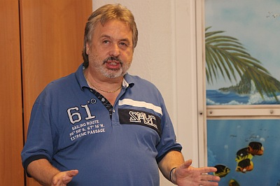 Ebenfalls mit der goldenen Ehrennadel des VDA wurde Aldo Pollera ausgezeichnet. Die Vereinsmitglieder freuten sich über diese Ehrung ganz besonders. Gerade in den letzten Jahren und auch davor hat das aus Italien stammende Vorstandsmitglied aktiv bei der Sanierung des Vereinsheims mitgeholfen. Seinem handwerklichen Geschick ist es zu verdanken, dass sich die Gebäude und das Gelände in einem solch hervorragendem Zustand befinden. Neben der Aquaristik ist Aldo Pollera im kunsthandwerklichen Bereich aktiv. Seine Lieblingsmotive bei der Holzschnitzerei sind - wie könnte es auch anders sein - Fische.