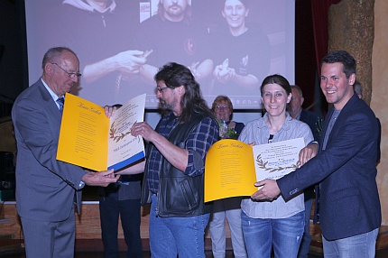 Markus Jäger, Melanie el Mohamad und Matthias Frank mit den Urkunden.