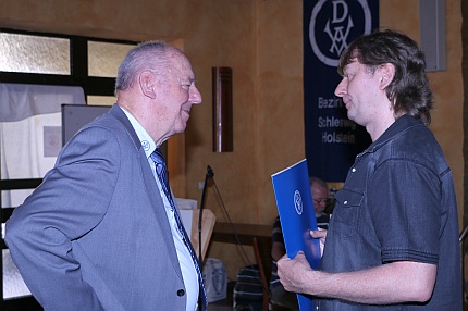 Rolf Rickborn vom VDA-Ehrungsausschuss (li.) gratuliert Matthias Frank