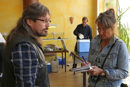 Zierfischexperten und Buchautor Dieter Untergasser im Gespräch (re.).
