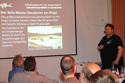 Buchautor Ingo Seidel zeigte in seinem Vortrag "Erhaltungszucht von Hypancistrus-Arten aus dem Rio Xingu" Fotos der natürlichen Lebensräume und ging anschließend auf die Zucht dieser Welse im Aquarium ein. Er motivierte die Teilnehmer bei der Zucht zu unterstützen, um einige Arten zu erhalten.