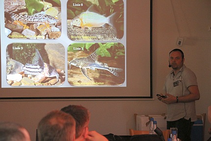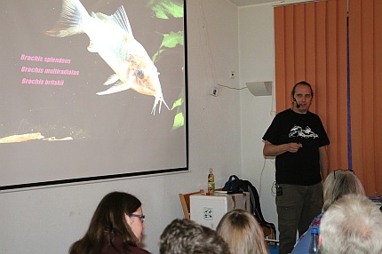 "Brochis - big is beautiful" lautete der Vortrag von Hans-Georg Evers. Der Chefredakteur der Fachzeitschrift Amazonas ging hauptsächlich auf die bedrohten Panzerwelse der Gattung Brochis ein, die aufgrund der aufwendigen Aufzucht im Aquarium nicht ganz einfach zu vermehren sind. Der Wels-Experte zeigte in seinem Vortrag Wege auf, wie man die bedrohten Arten durch Vernetzung der Züchter erhalten kann.