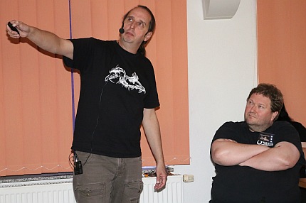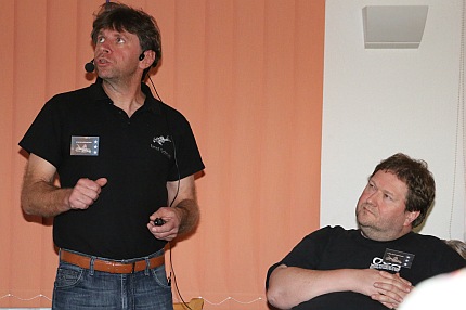 Hans-Georg Evers bei seinem Vortrag mit Ingo Seidel (re.).