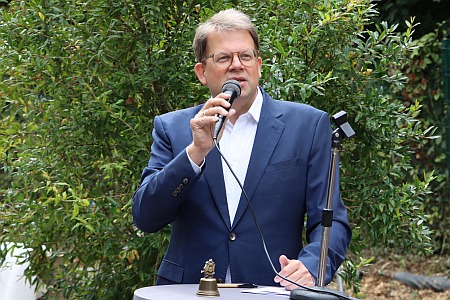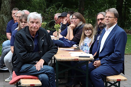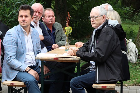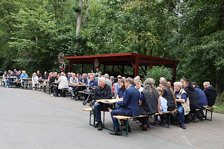 Mit einem ökumenischen Gottesdienst startete der Aquarien- und Terrarienverein "Scalare" 1925/55 e.V. Fulda in die Festveranstaltung im Tümpelgarten. Neben dem 100-jährigen Vereinsjubiläum wurden auch 60 Jahre Tümpelgarten am Standort Maberzeller Straße und 25 Jahre Aquarien- und Terrarienausstellung im Rudi-Schmitz-Haus gefeiert. Der Fuldaer Stadtpfarrer Stefan Buß und Pfarrer Stefan Bürger von der Kreuzkirchengemeinde hatten den Gottesdienst im Vorfeld mit den Verantwortlichen des Vereins vorbereitet. Dabei hatten die beiden beliebten Pfarrer bei der Auswahl der Lieder und Texte auf einen Bezug zu Natur und Tier geachtet. Mit dem Lied „Geh aus mein Herz und suche Freud…“ starteten die Gäste in den Gottesdienst und in die Festveranstaltung. Am Ende wurde dann nach guter alter Fuldaer Tradition „Großer Gott wir loben Dich…“ gesungen und der katholische Stadtpfarrer Stefan Buß und sein evangelischer Kollege Stefan Bürger spendeten den zahlreichen Anwesenden den Segen. Im Anschluss des Gottesdienstes begrüßte der 1. Vorsitzende Christian Redweik die Mitglieder und Ehrengäste. In seiner Rede ging er auf die 100-jährige Geschichte des Vereins ein und berichtete von den aktuellen Aktivitäten. Oberbürgermeister Dr. Heiko Wingenfeld, der regelmäßig zu Gast im Tümpelgarten ist, würdigte das Engagement des Fuldaer Vereins. Auch Vize-Landrat Frederik Schmitt gratulierte in seiner Rede zum Jubiläum. Er lobte die langjährige Zusammenarbeit zwischen dem Landkreis Fulda und den „Scalaren“, die seit 2016 Projektpartner von Biosphärenreservat Rhön sind. Der Parlamentarische Staatssekretär und Bundestagsabgeordnete Michael Brand gratulierte in seinem Grußwort ebenso wie der Landtagsabgeordnete Thomas Hering. Für die Fuldaer „Scalare“ war es eine besondere Ehre, dass Präsident Jens Crueger vom Verband Deutscher Vereine für Aquarien- und Terrarienkunde (VDA) e.V. im Tümpelgarten in Fulda zu Gast war. Jens Crueger berichtete über die vielen Verbandstreffen, die gerne im Vereinsheim der „Scalare“ abgehalten werden. Auch Enno Männche vom VDA-Bundesvorstand und Vorstand des VDA-Bezirks 18 Hessen sprach ein Grußwort, ebenso wie Torsten Raab von Biosphärenreservat Rhön. Moderator und Schriftführer Sven Haustein bedankte sich am Ende des offiziellen Teils bei den vielen Förderern, besonders aber bei Ruth Klesper von der Unternehmerfamilie des Hochstiftlichen Brauhauses in Fulda, die das Bier für die Festveranstaltung gestiftet hatte. Die Chanty-Chor der Marinekameradschaft Fulda unterhielt die Festgesellschaft mit bekannten Seemannsliedern und anschließend legte der 1. Vorsitzende Christian Redweik als „DJ Müsli“ auf und sorgte für einen stimmungsvollen Abend. Eine Arbeitsgruppe aus Vereinsmitgliedern hatte im Vorfeld zu den Jubiläen eine Festschrift mit fast 100 Seiten erstellt. Diese wurde im Anschluss an den offiziellen Teil an die Gäste und Mitglieder verteilt. Die Festschrift zum 100-jährigen Jubiläum steht im PDF-Format als Download zur Verfügung. Text und Fotos: Sven Haustein