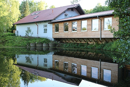 1977 ging es aber weiter. Ein neuer geschäftsführender Vorstand wurde gewählt. 1. Vorsitzender wurde Rudolf Schmitz, 1. Schriftführer Karl Heinz Schieb und 1. Kassierer Ulrich Dehler. Unter diesem Vorstand wurde der Neubau endlich fertiggestellt. Der neue Raum entspricht von der Größe her genau dem heutigen großen Vereinsraum. Auf der Terrasse wurde ein großer offener Außenkarmin gebaut. Davor haben wir viele schöne Stunden und sogar Nächte verbracht. Leider musste er bei der letzten Sanierung des Vereinsheims im Jahr 2010 aus Platzgründen abgerissen werden. Unter dem neuen Vorstand ging es wieder richtig vorwärts, und in der Folgezeit traten auch viele neue Mitglieder ein, die zum Teil auch heute noch aktiv sind. 1979 wurde ich volljährig und wechselte von der Jugendgruppe zu den erwachsenen Mitgliedern. Im Jahr 1982 wurde über die nächsten Sanierungsfälle nachgedacht. Der kleine Vereinsraum unsere „Notbaracke“ und die Kaltwasseranlage waren in die Jahre gekommen. Auch die Sanitäreinrichtungen entsprachen nicht mehr der Zeit. Alles sollte neu entstehen. Zuerst wurde 1982 die Kaltwasseranlage zwischen den Vogelvolieren und der Ausstellungshütte neu gebaut. Es entstanden 3 große Betonaquarien, die noch im Sommer mit Fischen besetzt werden konnten. Im Herbst begannen dann die Abrissarbeiten. 1983 wurde der neue kleine Vereinsraum fertig. Die neuen Sanitäranlagen entstanden am Platz der alten Kaltwasseranlage. Zwischen dem großen Vereinsraum und den Sanitäranlagen entstand noch ein Überwinterungsraum für Pflanzen, der später als Zuchtraum für Aquarienfische diente. 1984 wurde ich offiziell zum 2. Tümpelwart gewählt und war somit im Vorstand des Vereins. Die nächste Großmaßnahme betraf unseren großen Teich. Der Weiher war mittlerweile durch das Hochwasser und einfallendes Laub stark verschlammt und hatte nur noch eine geringe Tiefe. 1985 wurde der Versuch unternommen, den Schlamm mit Vakuumpumpfahrzeugen des Abwasserverbandes Fulda abzupumpen. Der Versuch scheiterte, weil zu viel festes Material wie Äste enthalten war. 1986 wurde nach eingehenden Beratungen ein neuer Versuch unternommen, der schließlich erfolgreich war. Es wurde ein tiefer Brunnenschacht gebaut. Hier wurde das Wasser über eine längere Zeit abgepumpt, wodurch sich der Schlamm verfestigen konnte. Nun konnten gefahrlos große Baumaschinen einer Fuldaer Baufirma den Schlamm entfernen. Er wurde hinter einem Damm abgelagert. Gleichzeitig wurde auch noch entlang der Antoniuswiese ein Damm aufgeschüttet, der Sand bei Hochwasser fernhält. Der Damm musste nochmals umgebaut werden, da er nicht ganz den Hochwasserrichtlinien entsprach. Ein Durchlass wurde noch eingebaut damit kein Restwasser auf der Wiese bleibt. Diese Maßnahme war nur durch die Zusage eines Zuschusses des Fuldaer Kulturausschusses zu stemmen. Im Jahr darauf war der Teich wieder biologisch gesundet. 1990 wurde unsere Terrasse saniert und neu gestaltet. Dabei entstand auch eine überdachte Pergola, so daß man sich auch bei Regen dort aufhalten konnte. In der folgenden Zeit wurde unser Einfahrtsweg bis zum Parkplatz mit Resyclingteer befestigt. Die alte Schotter-Schlaglochpiste war endlich beseitigt. Unter Vermittlung von unserm damaligen Gerätewart Jürgen Blum wurden die Arbeiten mit der Firma Küllmer ausgeführt. 1994 wurden Überlegungen zum Neubau des Ausstellungshauses angestellt und der Vorstand mit den Planungen dazu beauftragt.
