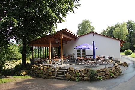 Weiter ging es nicht. Ab hier waren unzählige Buckel im Gelände zu sehen. Alles war mit Unkräutern und Büschen überwachsen. Dieser Bereich entspricht etwa dem heutigen Parkplatz. Das Gelände hinter der Erlenbaumreihe am Parkplatz bestand aus einem riesigen Schilfmeer mit einigen Weidenbüschen, das sich bis zum Ufer der Fulda erstreckte. So sah der neue Tümpelgarten am Anfang aus. Als erste Arbeiten wurde der Weg befestigt und die Vor- und Fundamentarbeiten zur Errichtung einer Vereinshütte vorgenommen. Diese Hütte war eine Notunterkunftsbaracke, die in der Siedlung an Vierzehnheiligen stand. Die Baracke wurde dort abgebaut und im Vereinsgelände wieder errichtet. Im Jahr darauf wurde mit einfachsten Mitteln ein Anbau in Form einer Veranda in Richtung Teich gebaut. Alles wurde in Eigenleistung durchgeführt und durfte nach Möglichkeit nichts kosten, da wir damals kein großes Vereinskapital hatten. Die Isolierung bestand beispielsweise noch aus Steinwolle und Styroporabfällen. Alles wurde Innen und Außen mit Seekistenbrettern verkleidet. Die Außenseiten wurden mit Fichtenschwartenbrettern versehen. Das war unser neues Vereinsheim. Zu dieser Zeit war das Vereinsgelände für uns „Tümpelkinder“ der größte Abenteuerspielplatz der Welt. Da wurden Exkursionen ins Schilffeld auf Bretterwegen unternommen und wir waren so manches Mal verschollen. Es gab natürlich deswegen immer mal wieder Ärger, auch weil die Sonntagsklamotten mal wieder eingesaut waren. Im weiteren Gelände wurde so einiges verändert. Die große Buckelpiste wurde eingeebnet, und es entstand die Fläche des heutigen Parkplatzes. Das Gelände wurde auch rundum eingezäunt. Alle Zaunpfähle wurden von Hand gesetzt und einbetoniert. In das große Schilffeld wurde eine Rampe aus Bauschutt angelegt. Auf dieser Rampe bewegte sich ein großer Kettenbagger, der das Schilf und Schlammmaterial auf einen LKW verlud. Das Material wurde im Bereich des heutigen Hutzelfeuerplatzes auf einem riesigen Haufen abgelagert. Die Rampe wurde zum Schluss mit ausgebaggert. So entstand der mittlere Teich. Die Ufer wurden mit Weidenpfählen und Stämmen, die aus diesem Bereich stammten, befestigt. Die große Abraumhalde wurde im nächsten Frühjahr, nachdem alles abgetrocknet und gefestigt war, eingeebnet. Es entstand der Bereich des Hutzelfeuerplatzes. Ganz hinten, direkt an der Fulda, entstand noch ein weiterer kleiner Weiher. Der restliche Teil des Schilffeldes wurde bis heute als Biotop erhalten. Später wurden die neuen Teiche einzeln eingezäunt. Hier wurden dann verschiedenes Wassergeflügel wie Enten und Gänse sowie Hühnergeflügel wie Perlhühner und Truthähne gehalten. Zu dieser Zeit waren Georg Rösch, der damals sehr bekannte „Tümpelschorsch“ und mein Vater die amtierenden Tümpelwarte.