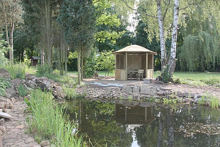 Leider starb noch im Jahr 2000 mein Vater. Er war Jahrzehnte lang Tümpelwart und teilweise „Mädchen für alles“ im Tümpelgarten. 2001 wurde gegenüber von unserem Vereinsgelände, auf der anderen Seite der Maberzeller Straße, ein Tegutmarkt gebaut. Dadurch wurde auch unser Einfahrtsbereich zur Straße umgebaut. Es wurde eine Ampelanlage mit einer eigenen Kontaktschleife in unserer Ausfahrt gebaut. Eine Ein- und Ausfahrt mit eigener Ampelschaltung hat nicht jeder. Das gibt es nur bei uns. 2002 wurde zu Ehren unseres langjährigen 1. Vorsitzenden das Ausstellungshaus auf den Namen „Rudi-Schmitz-Haus“ getauft. Unser Goldfischteich und der Rest der Heidelandschaft waren nun in die Jahre gekommen. Von 2006 bis 2007 wurde alles unter Federführung von Rolf Grasser saniert und umgebaut. Der Teich wurde vergrößert, vertieft und mit einer neuen Teichfolie ausgelegt. Ein Klärteich mit Bachlauf und Wasserfall zum Teich wurden angelegt. Das Gelände um den Weiher wurde neu gestaltet und mit neuen Wegen aus Buntsandstein versehen. Die Technik für den Teich wurde unter Vermittlung von Rolf Grasser von der Firma Heissner gespendet. Ebenso wurde ein Holzpavillon errichtet, der von Zahnarzt Dr. Bernd Robert Koch gesponsert wurde. Neben dem Pavillon steht eine große Birke. Sie ist einer von zwei Bäumen im Gelände, die mir sehr am Herzen liegen. Dieser Baum ist die einzige Pflanze, die noch aus dem alten Tümpelgarten stammt und bis heute überlebt hat. Der zweite Baum ist die große Buche, die neben unserer Terrasse steht. Die habe ich selber vor etwa 50 Jahren als kleines Bäumchen gesetzt. In den folgenden Jahren ging es mit anderen Baumaßnahmen weiter. Der Eingangsweg wurde mit einer festen Teerdecke bis zum Ende des Parkplatzes versehen. Einen ganzen Sommer lang wurden immer mal wieder Fuhren mit gebrauchten Pflastersteinen abgeladen. Alles auch wieder unter Vermittlung von Jürgen Blum und mit Hilfe der Firma Küllmer. Die Steine wurden per Handarbeit aus dem mitgelieferten Schotter aussortiert und auf Paletten gelagert. Im Jahr darauf wurde unser Parkplatz komplett in Handarbeit eingefasst und gepflastert. Endlich konnte man sich sauber und trocken Fußes dort bewegen. Außerdem blieb dadurch unser Vereinsheim wesentlich sauberer. Am anderen Ende unseres Geländes baute die Stadt Fulda eine Rad- und Fußgängerbrücke über die Fulda. Unser Gelände wurde mit einem geteerten Weg vom Parkplatz zum neu gebauten Fuß- und Radweg angeschlossen. Ein neues Tor wurde in diesem Bereich errichtet. Dieses ist immer zu den Öffnungszeiten unserer Ausstellung an Sonn und Feiertagen geöffnet.